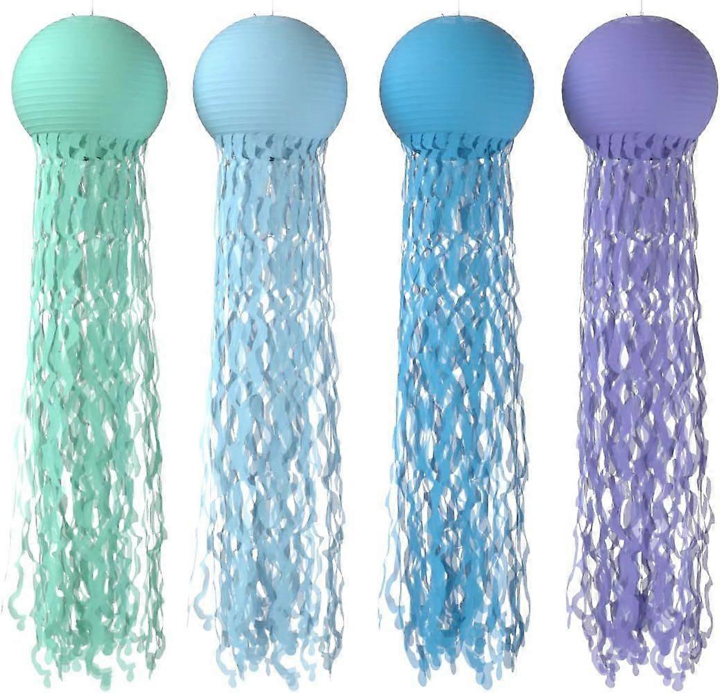 Mermaid Hanging Jellyfish Paper Lantern, 4PCS Jelly Fish Wishes Lanterns Kit, Honeycomb Ocean Party Decorative Lamps Set for Baby Kids Gift Birthday R