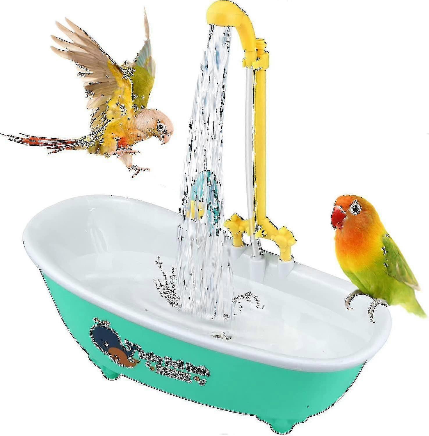 Parrot Bath Tub, Automatic Bird Bathtub With Faucet And Shower, Bird Bathroom Toys For Parakeets Budgie Cockatiel Conure And Small Birds