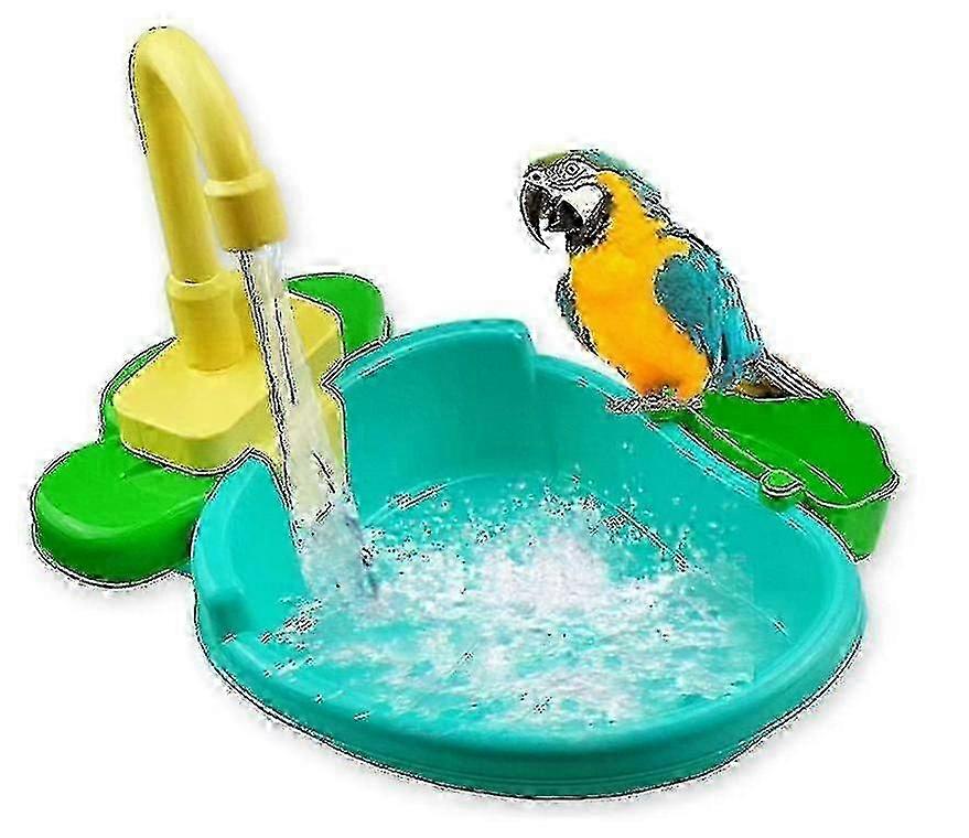 Bird Bath Tub Automatic Parrot Bathtub with Faucet Bird Feeder Bowl Showers for Birds