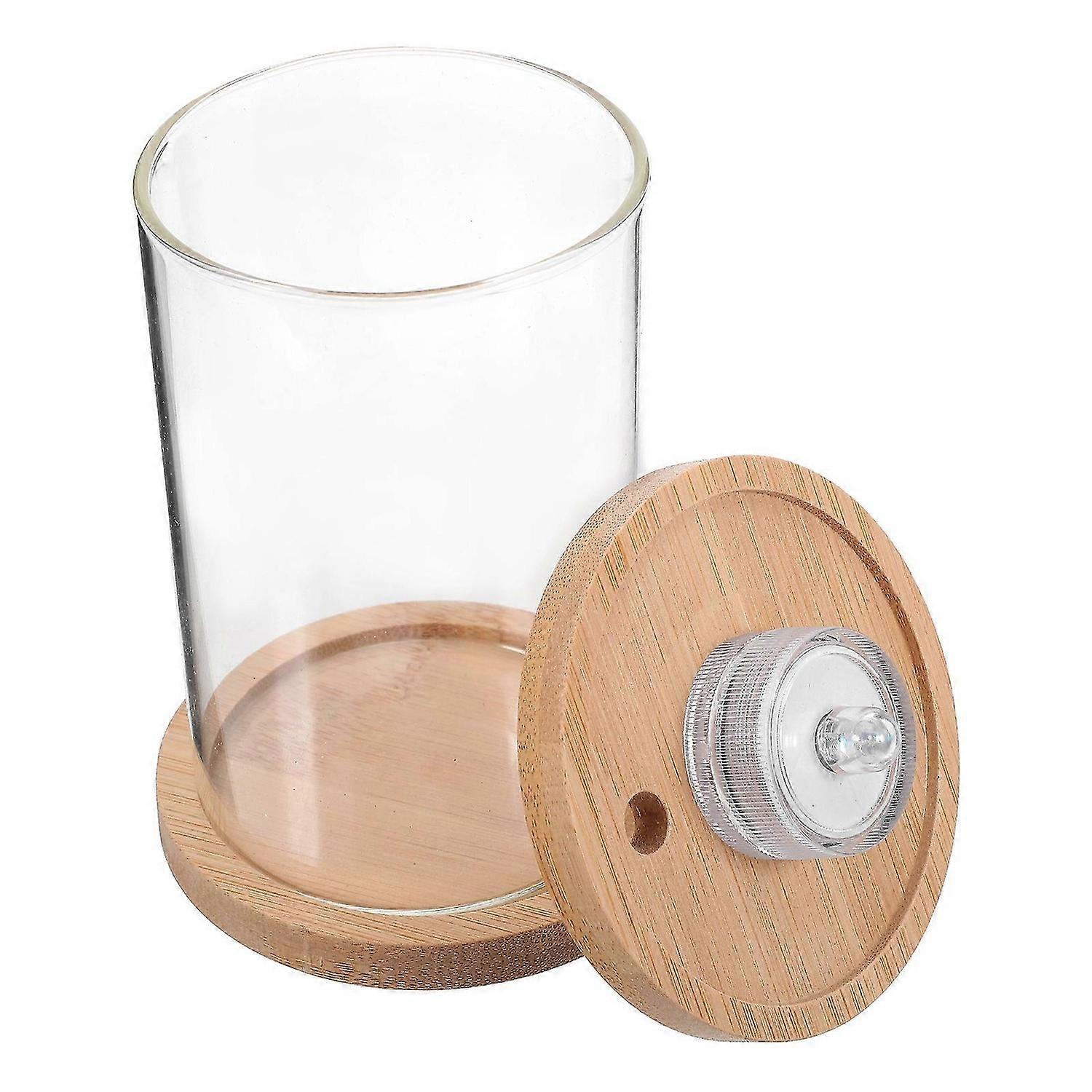 Portable Desktop Fish Tank Transparent Glass LED Aquarium with Wooden Lid Base 1 Set
