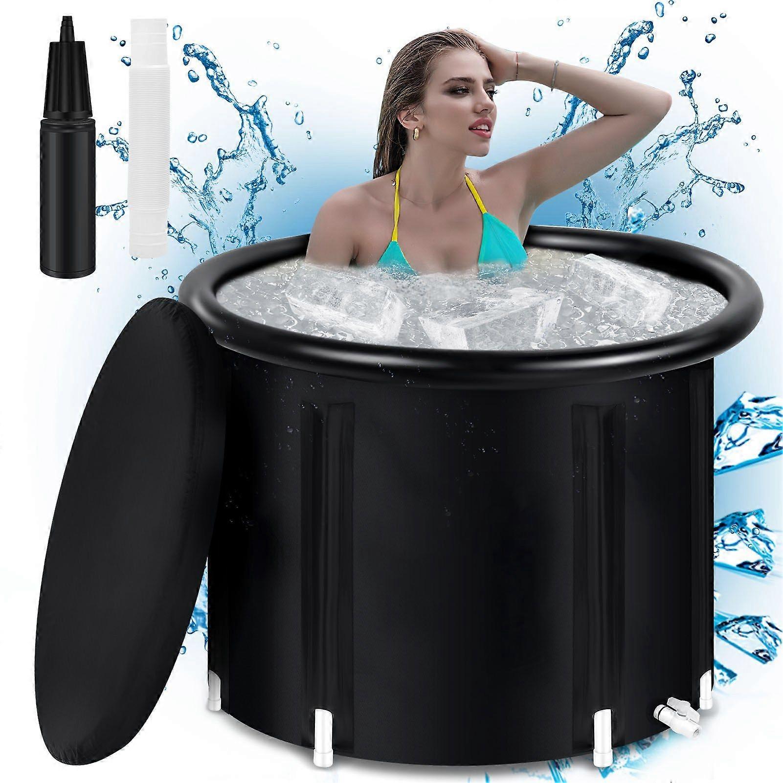 Ice Bath Tub with Cover Black Portable Foldable Tear Proof Multi Layered Cold Plunge Tub for Gardens Gym Camping