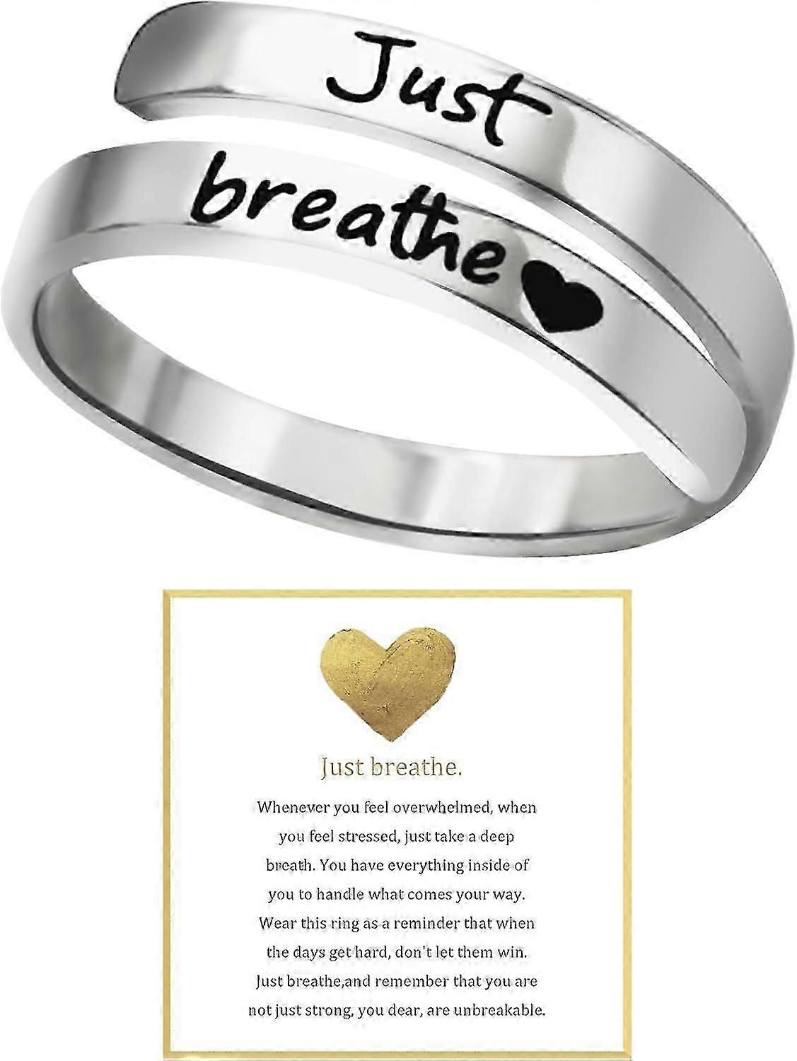 Just Breathe Ring for Women, Adjustable Heart Ring, Stainless Steel Spiral Wrap Healing Rings, Inspirational & Heart felt Gift