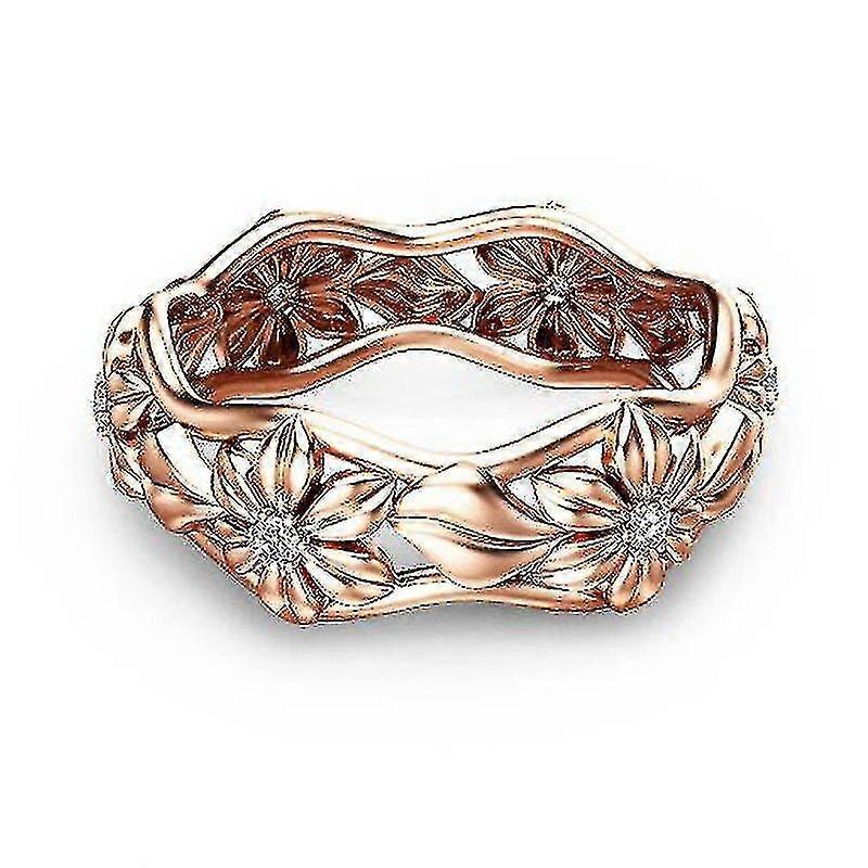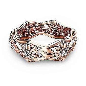 Rose Gold Plated Flower Ring With Diamonds - Fashion Rose Gold Floral Diamond Ring