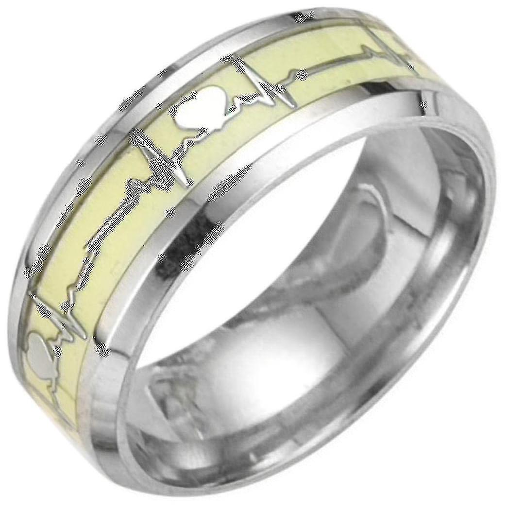 Ring Unique Features: Luminous..Because the ring will be luminous . When your beloved, in the dark to see the ring heartbeat ECG pattern, he must be very happy, just like your lover on your side,, you can feel to her heartbeatLuminous Titanium steel ring does not turn your finger green. It has a unique feature in that It does glow in the darkUnique Gift ring design for couples Men and Women, Boy and Girls. the best gift in Christmas's Day or wedding, Party Day,Valentine's Day.Fine or Fashion:FashionItem Type:RingsStyle:Cute/RomanticOccasion:WeddingGender:lovers'Rings Type:Wedding BandsShape\pattern:HeartMaterial:stainless steelcolour:Silver Bottom Silver Platesize:Surface Width:8mmring:9Package Contents:1*RingOnly the above package content, other products are not included.Note: Light shooting and different displays may cause the color of the item in the picture a little different from the real thing. The measurement allowed error is +/- 1-3cm.