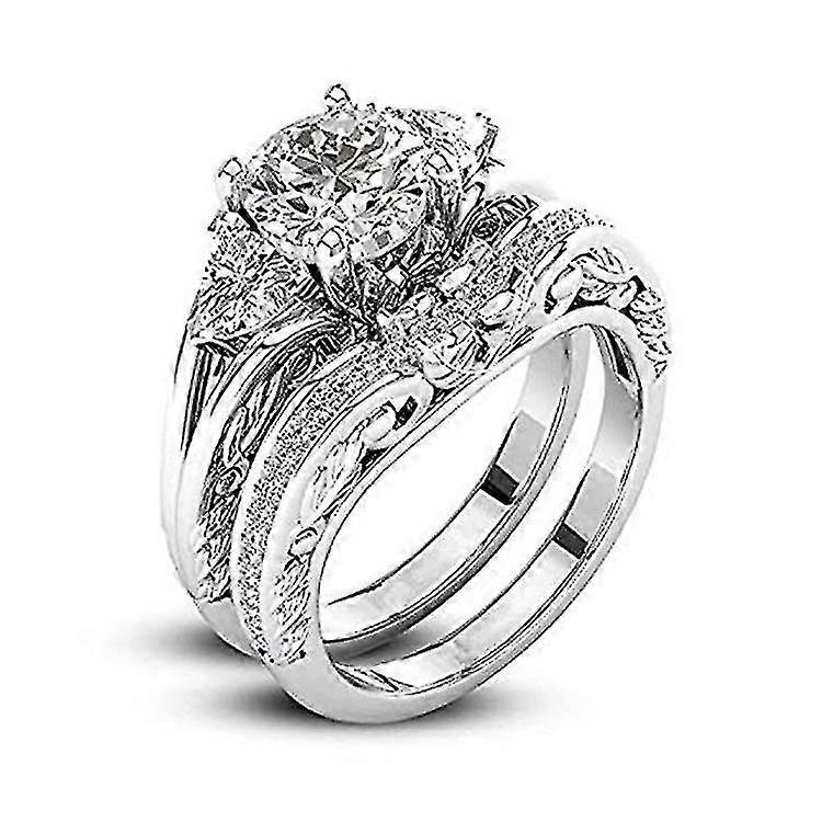 Silver Plated Floral Diamond Set Ring - Simple Silver Flower Pattern Diamond Set Ring