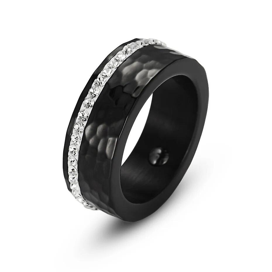 Women's Ring Hematite Health Rings With Rhinestones Elegant Stainless Steel Bio Energy Black Couple Jewelry Gift