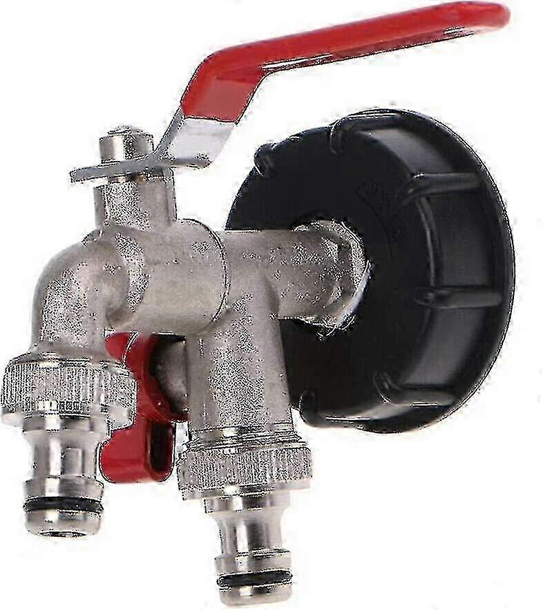 Outside Faucet Brass Double Outlet Drain Tap, Double Valves 1/2" Outlet Diameter 1/2", Inlet Diameter 60mm, Outlet Quick Coupling For Tank Adapter, Ga
