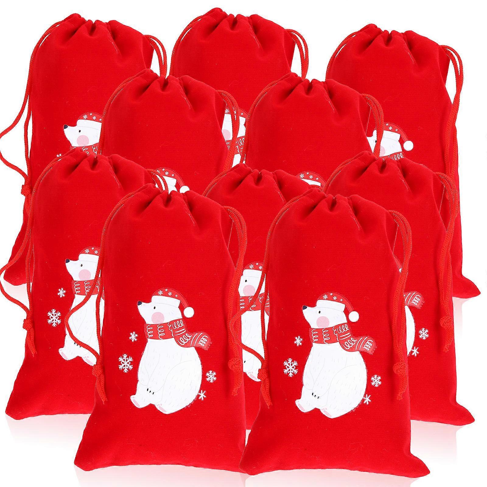Gingerbread Man Drawstring Bag Christmas Sacks present Wrapping Red 15.7x9.8cm 10Pcs