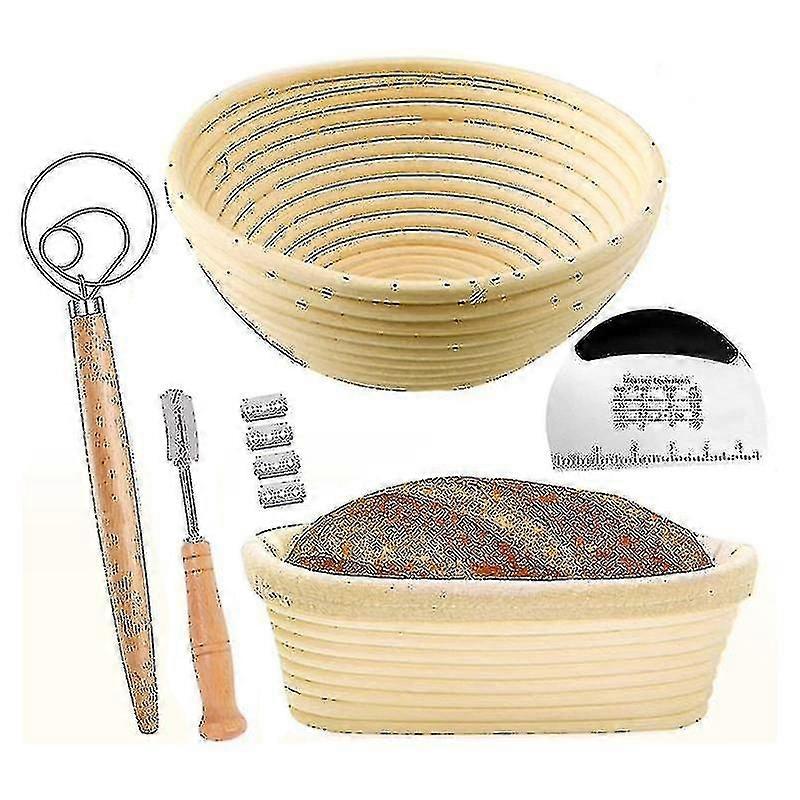 Bread Proofing Basket Set Of 2 With Starter Kit-round And Ovel Bread Baking Bowl Tools -bread Lame-