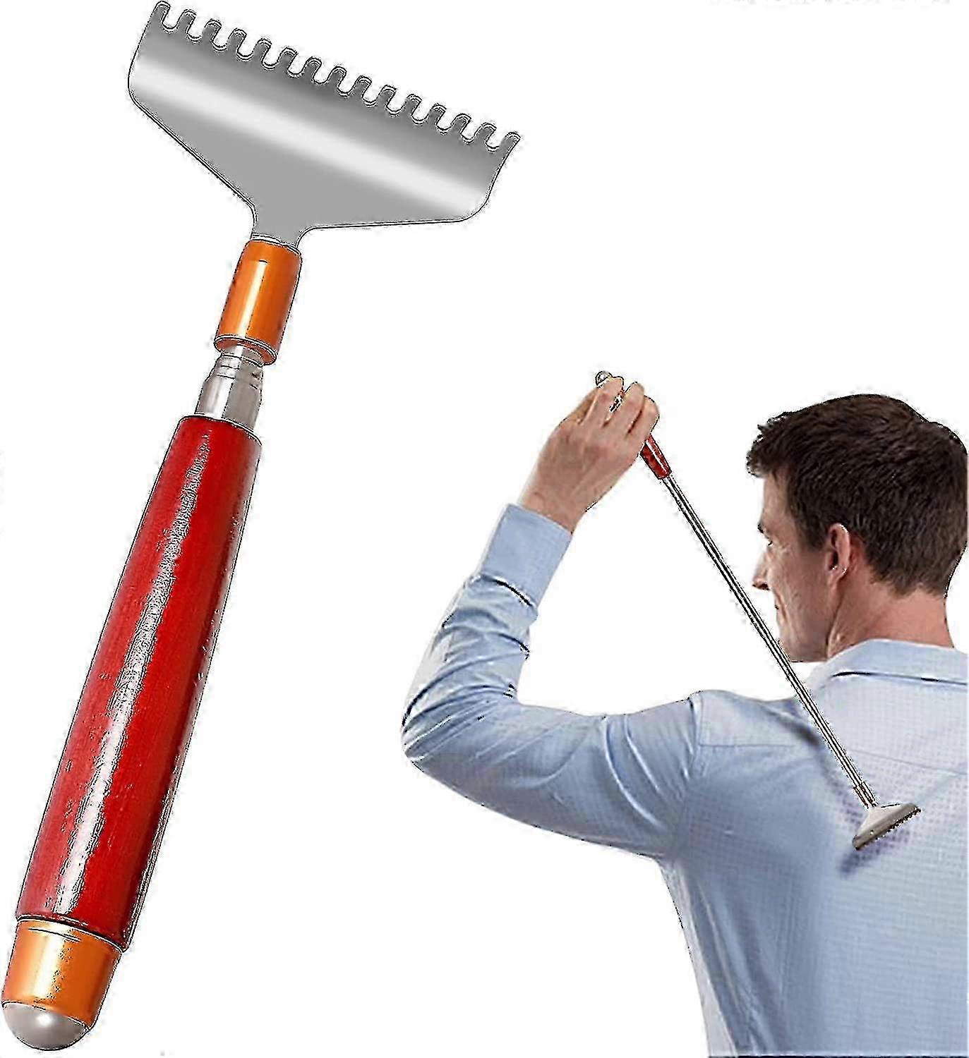 Wide Back Scratcher, Extendable Back Scratcher for Women Men with Wood Handle- Massage Roller, Extra Wide 15-Teeth Claw Heavy Duty Manual Metal B