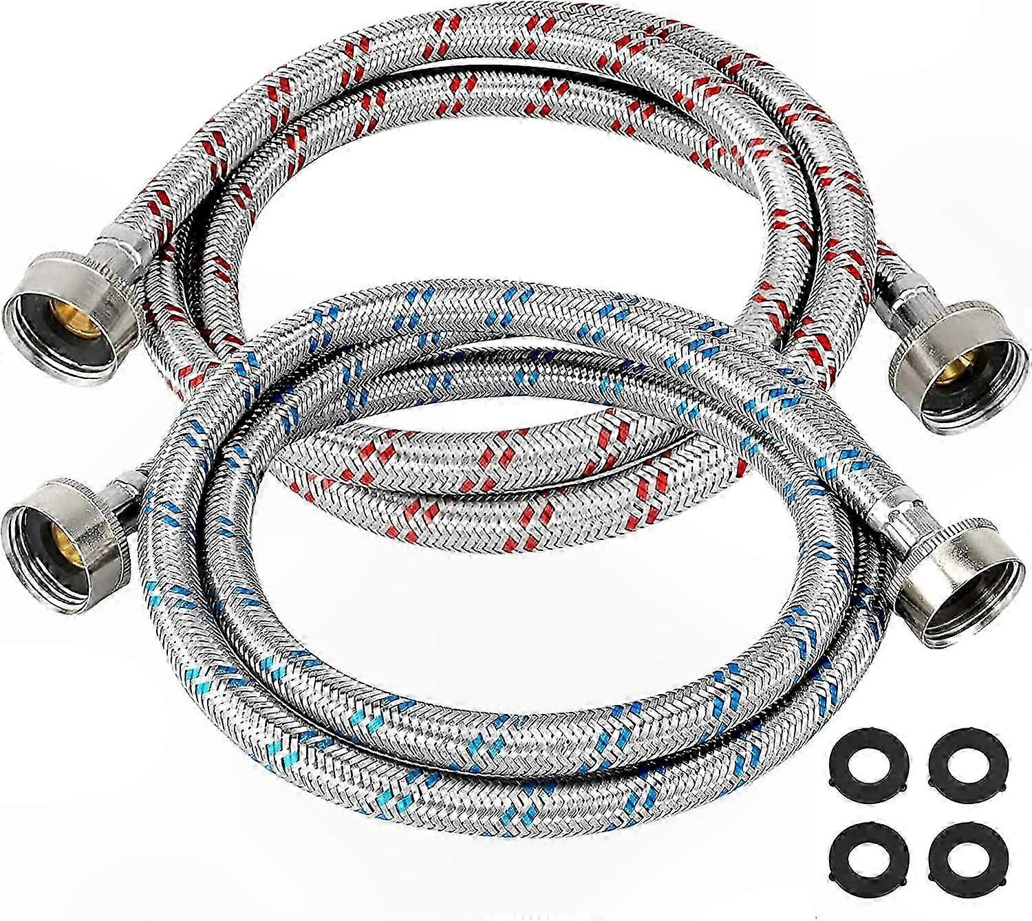 Stainless Steel Braided Washing Machine Hoses, 4 Ft, Red & Blue, 2-Pack, Durable & Leak-Resistant