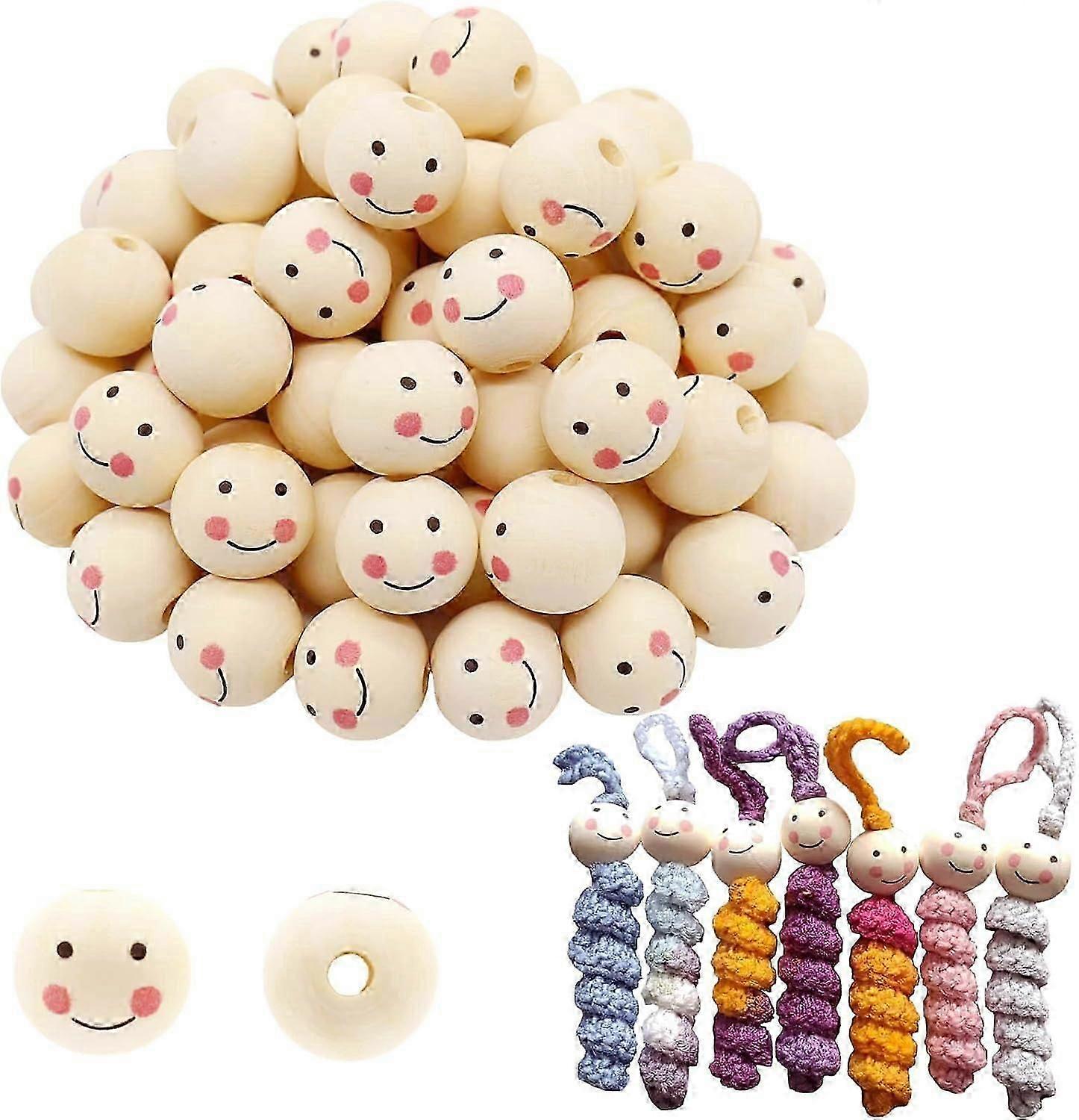 Wooden Beads with Face Pack of 60 - Wooden Heads with Face 20 mm, Wooden Beads Natural Wood Craft Beads for Worry Worms, Lucky Worms, Angel Heads, Rou