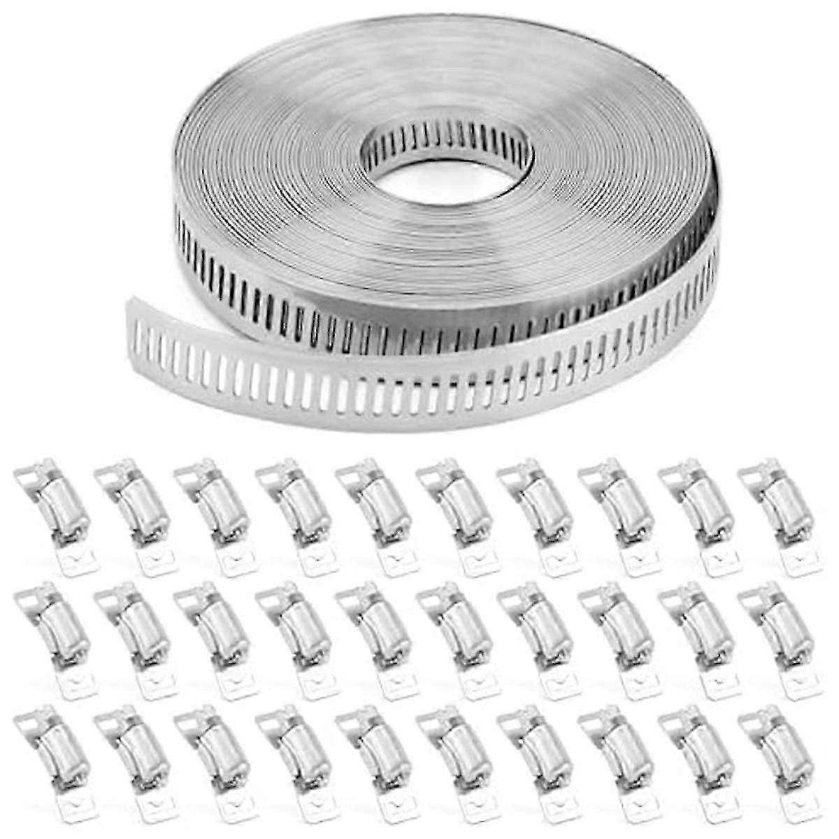 Hose Clamps Strapping+30 Fasteners Diy Stainless Steel Band Clamps Adjustable Worm Gear Hose Clamps