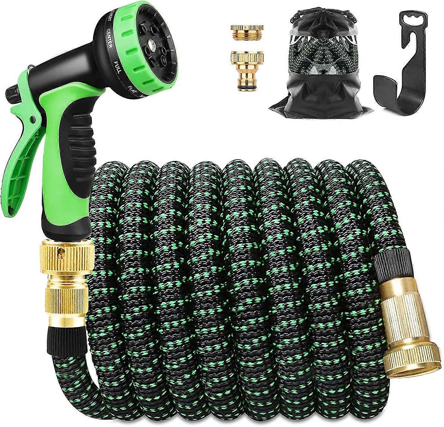 15m Expandable Garden Hose, With Holder And 10 Function Spray Gun Retractable(50ft, Black Green)