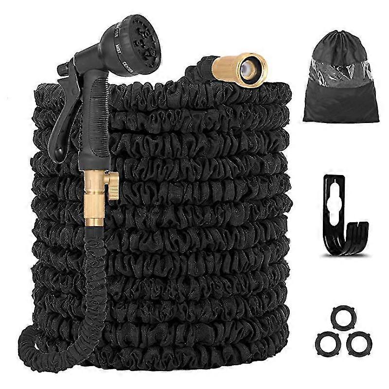 Expandable Garden Hose Up To 30m With 8 Function Spray Gun,brass Fittings,hose Holder,storage Bag(black)