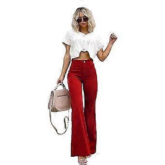 خريف / شتاء المرأة بلون خالص متوسط الارتفاع نحيف قليلا متوهجة السراويل سروال قصير مطاطي الخصر عارضة السراويل - جيد