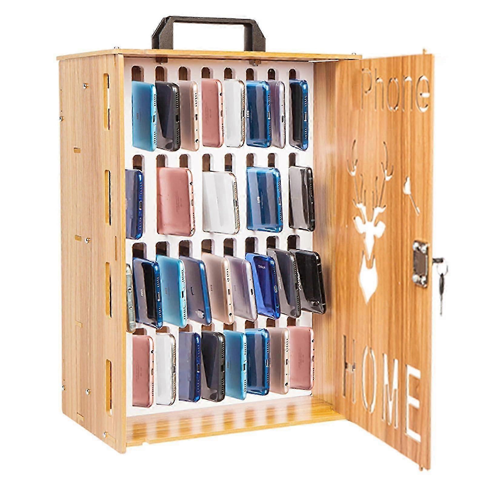 Mobile Phone Cabinet, 36-Slot Wood Lock Cell Phone Safe Organizer, Portable Rechargeable Design with Carry Handle for School and Business