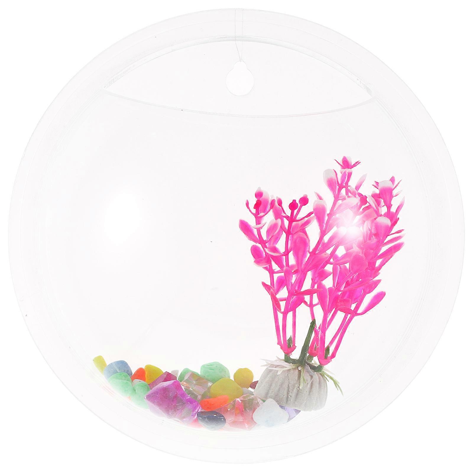 Transparent Wall Mounted Acrylic Fish Tank | Decorative Hanging Aquarium for Home | Sturdy Fish Bowl with Random Plant | Space Saving Design, Easy
