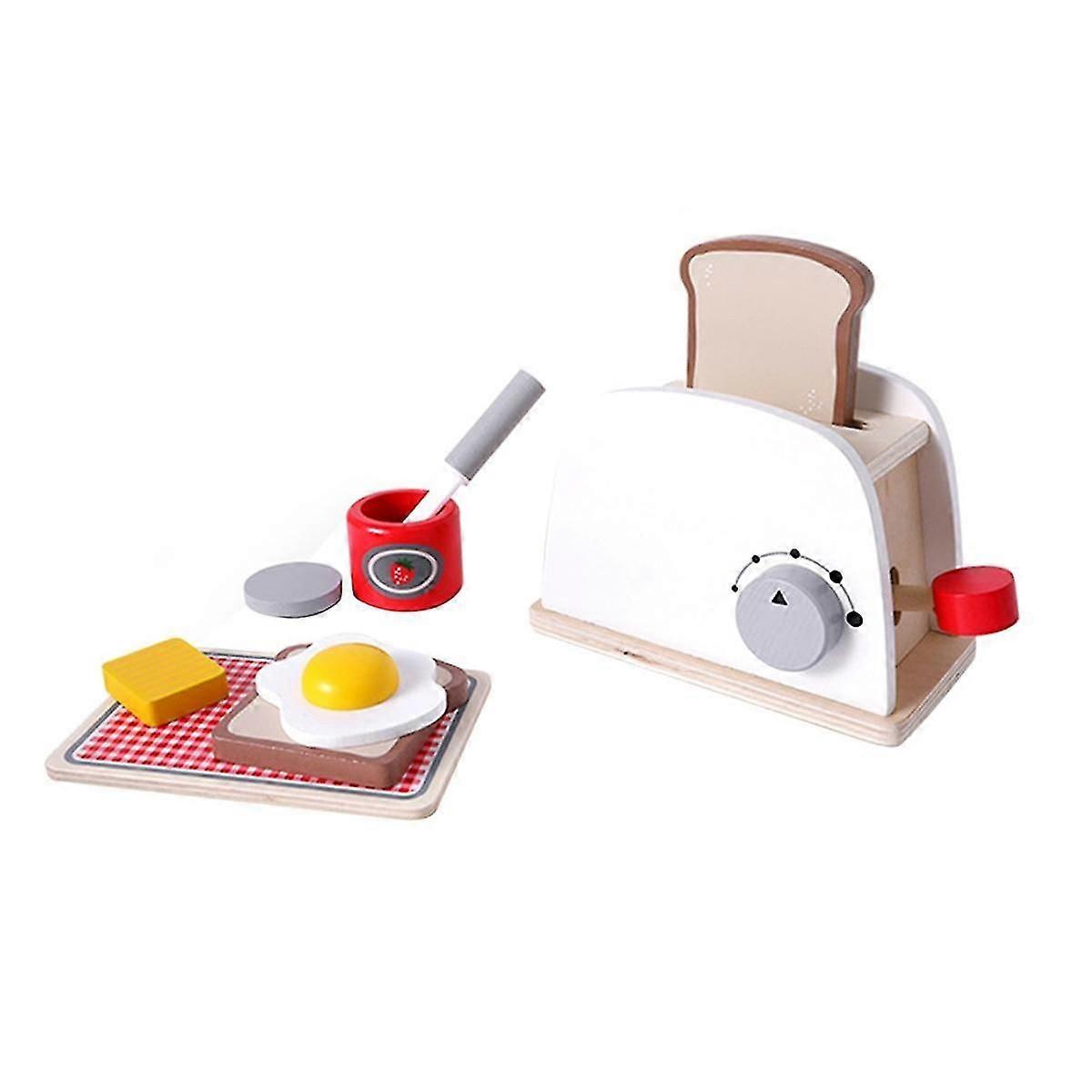 Wooden -up Toaster Toy Play Kitchen Accessories Play Food Bread, Butter, Poached Egg Cutting Preten