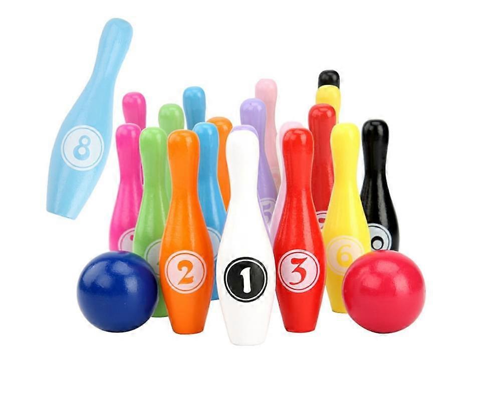 Wooden Colorful Number Bowling Ball Pin Set Sport Games Educational Kids Toy