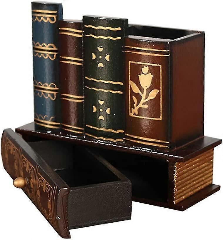 Wooden Pen Holder Vintage Pen Cup With Drawer