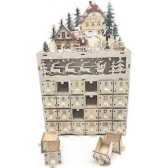 Wooden Christmas Advent Calendar Countdown to Christmas LED Holiday Decoration 24 Drawers with LED