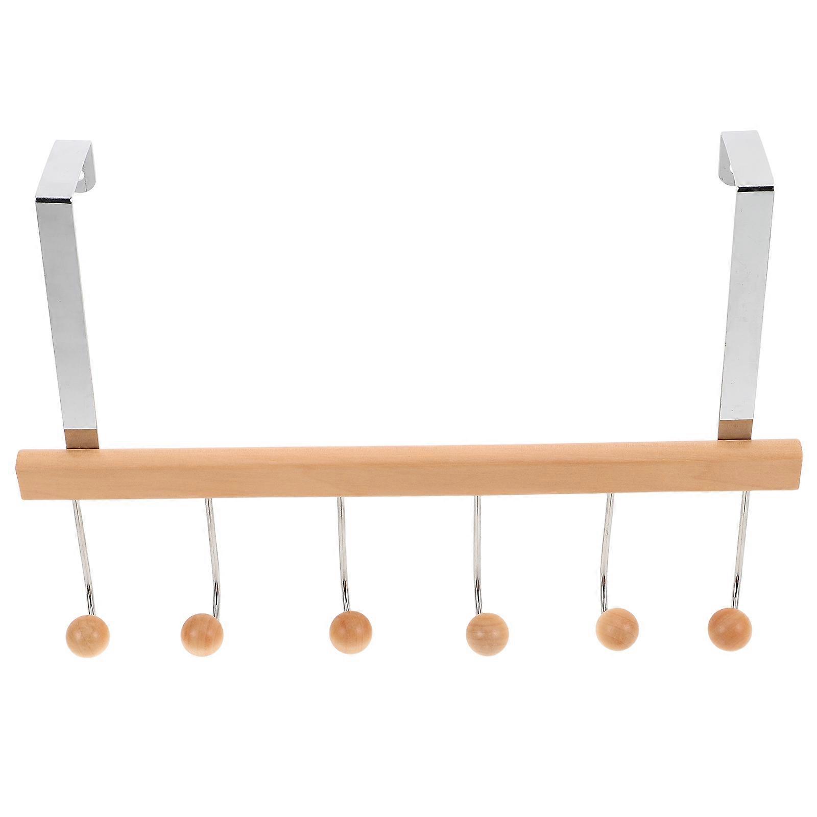 Wooden Over the Door Hook Rack, 6 Hooks, Heavy Duty Coat Hanger for Bags, Coats, Towels, Hats, Robes, Scarves
