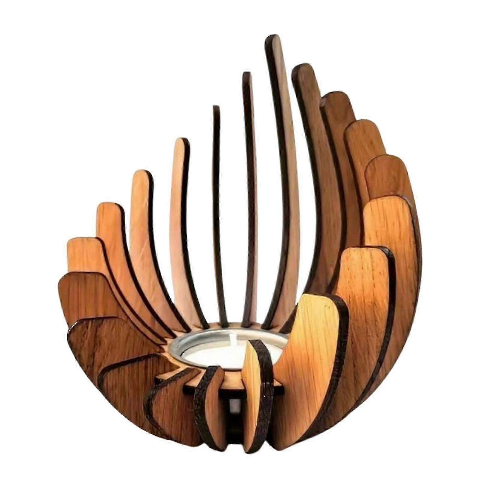 Wooden Lotus Tea Light Candle Holder Premium Natural Wood Lotus Shape Desk Decor for Living Room Bedside