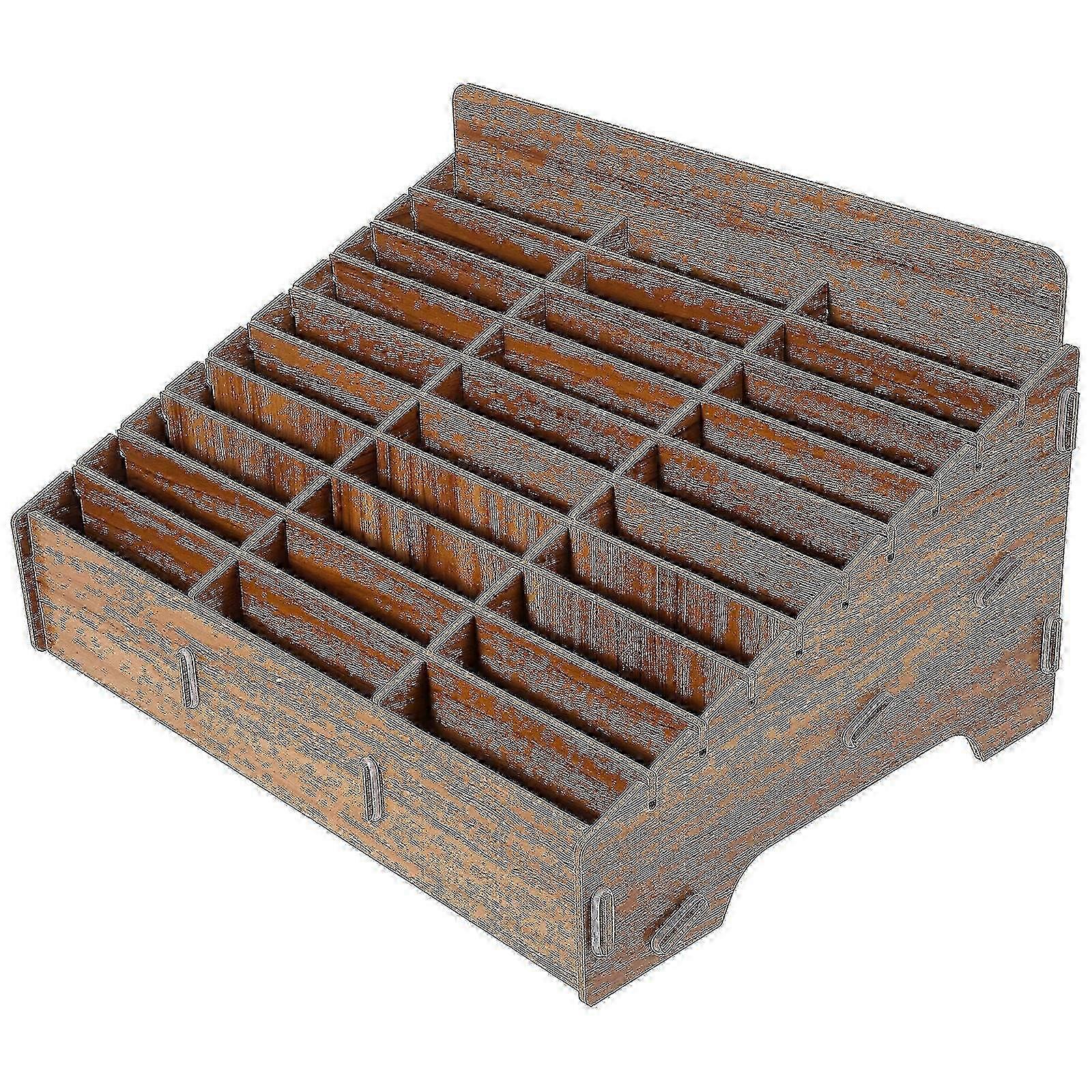 Wooden 30-grid Cell Phones Storage Box Desktop Mobile Phone Holder Organizer