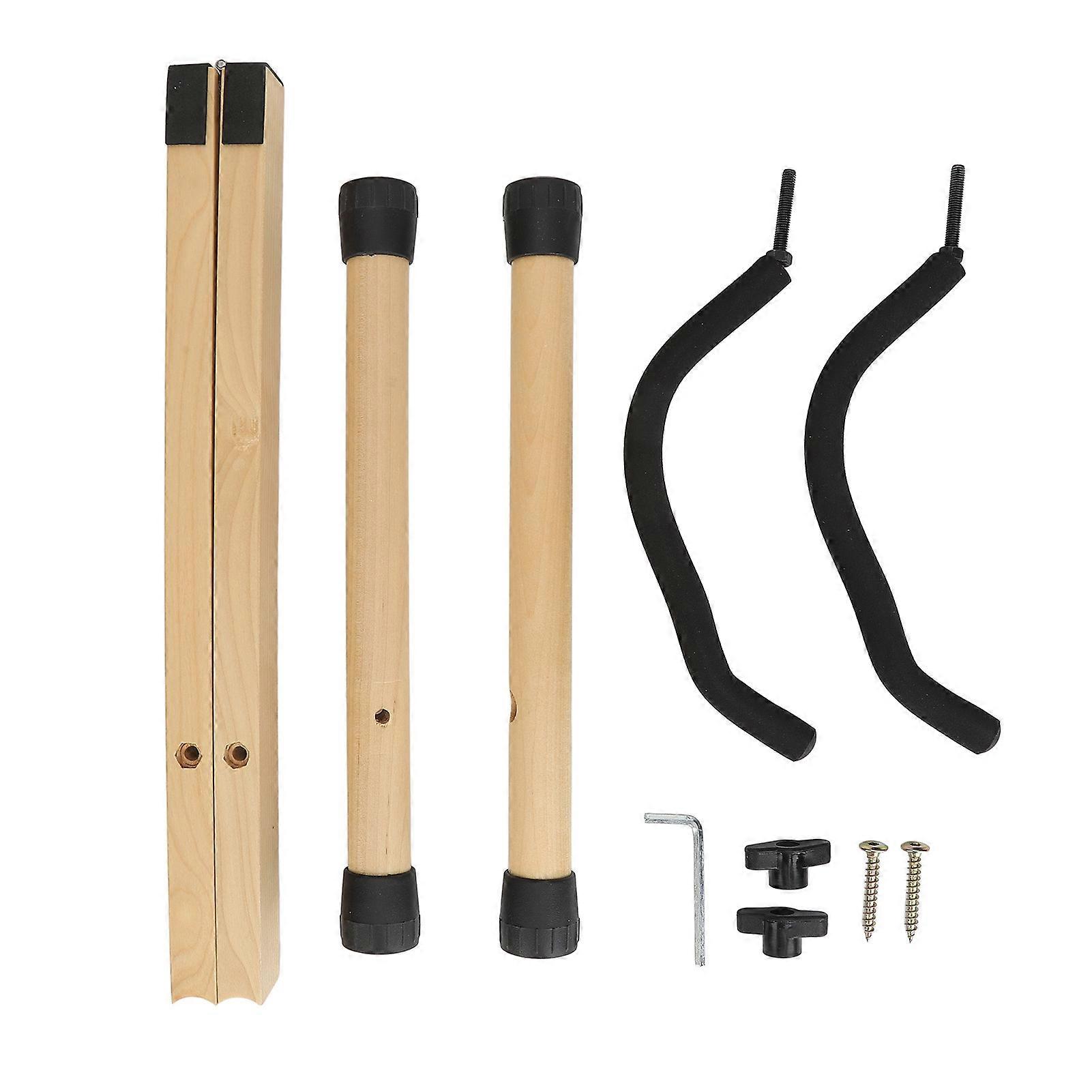 Feature:1. Portable And Space Saving: Foldable guita stand is designed with lightweight, easy to store and travel with. Fold flat in seconds for convenient storage.2. Adjustable A Frame Design: A frame guitar stand allows width adjustment to accommodate various instrument sizes, ensuring better stability. The solid wood construction offers enhanced stability and minimizes wobbling.3. Easy Assembly: Wood guitar stand says no to complicated installation. Effortlessly set up within seconds, no tools required. Comes with an installation accessory pack.4. Suitable For String Instruments: Ideal for acoustic guitars, classical guitars, electric guitars, bass, banjos, mandolins, and more. Versatile to meet your needs.5. Metal: Guita stand is crafted with solid alderwood, metal, rubber, sponge, smoothing edges, unique wood grain, and exquisite appearance wherever you place it. Provides protection against cracks, damage, and vibrations for your guitar stand.Specification:Item Type: Guitar StandMaterial: Beech wood, metal, rubber, foamApplicability: Acoustic, Classical, Electric, Bass, Mandolin, and more.Package List:1 x Main Post2 x Support Rods2 x Brackets2 x Screws2 x Bolts1 x Hex Wrench