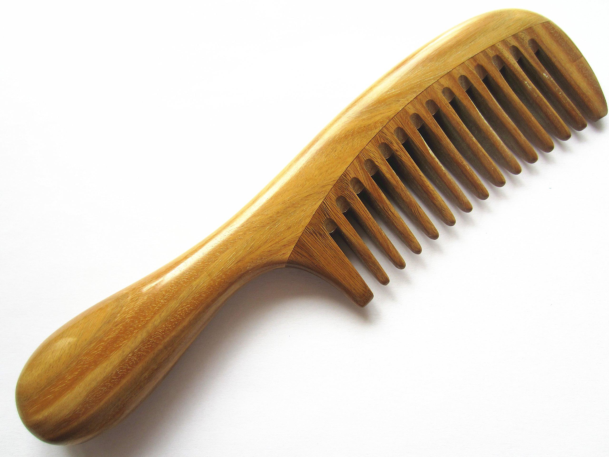 Wide Tooth Wood Handmade Natural Green Sandalwood No Static Comb with Rounded Handle with Aromatic Scent for Detangling Curly Hair and Gift(7.1"long)