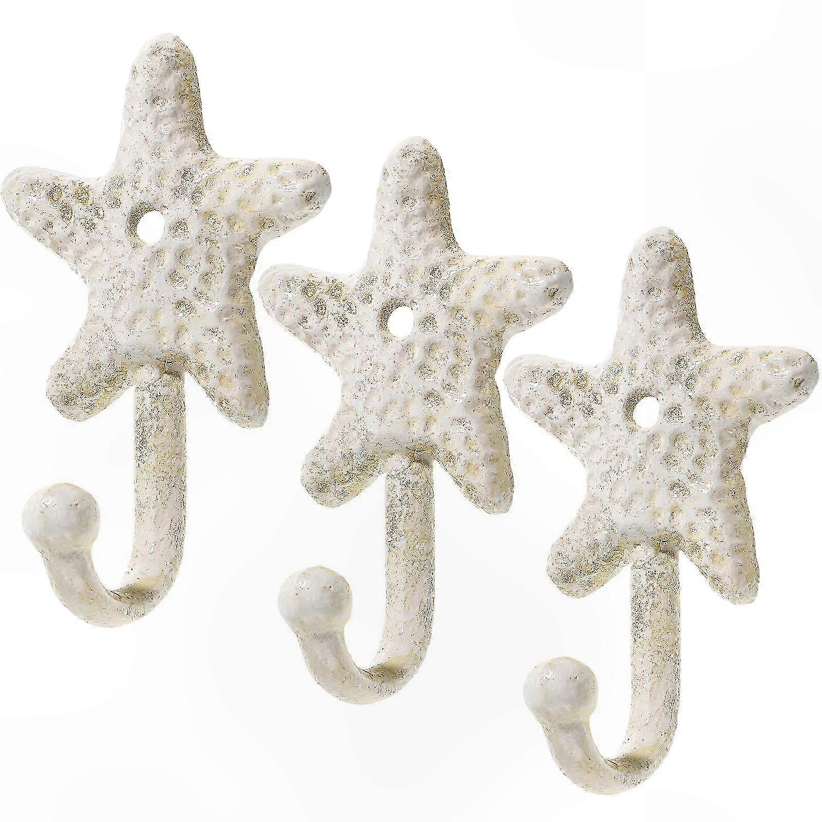 Starfish Shaped Wall Hooks - Set of 3 Iron Decorative Hangers for Nautical Themed Rooms