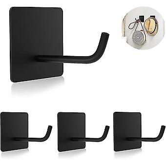 Adhesive Hooks, 304 Stainless Steel Wall Towel Hooks, Heavy Duty Self Adhesive Adhesive Hooks For Hanging Towels, Robes, Hats, Coat Keys. 4 Black