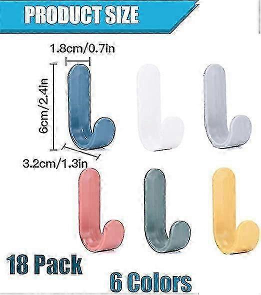 Colorful Adhesive Hooks, 18 Pieces Towel Hook, Self Adhesive Hooks Strong, Plastic Adhesive Hook, for Bathrobe, Coat, Towel for Kitchen, Bathroom, Cl