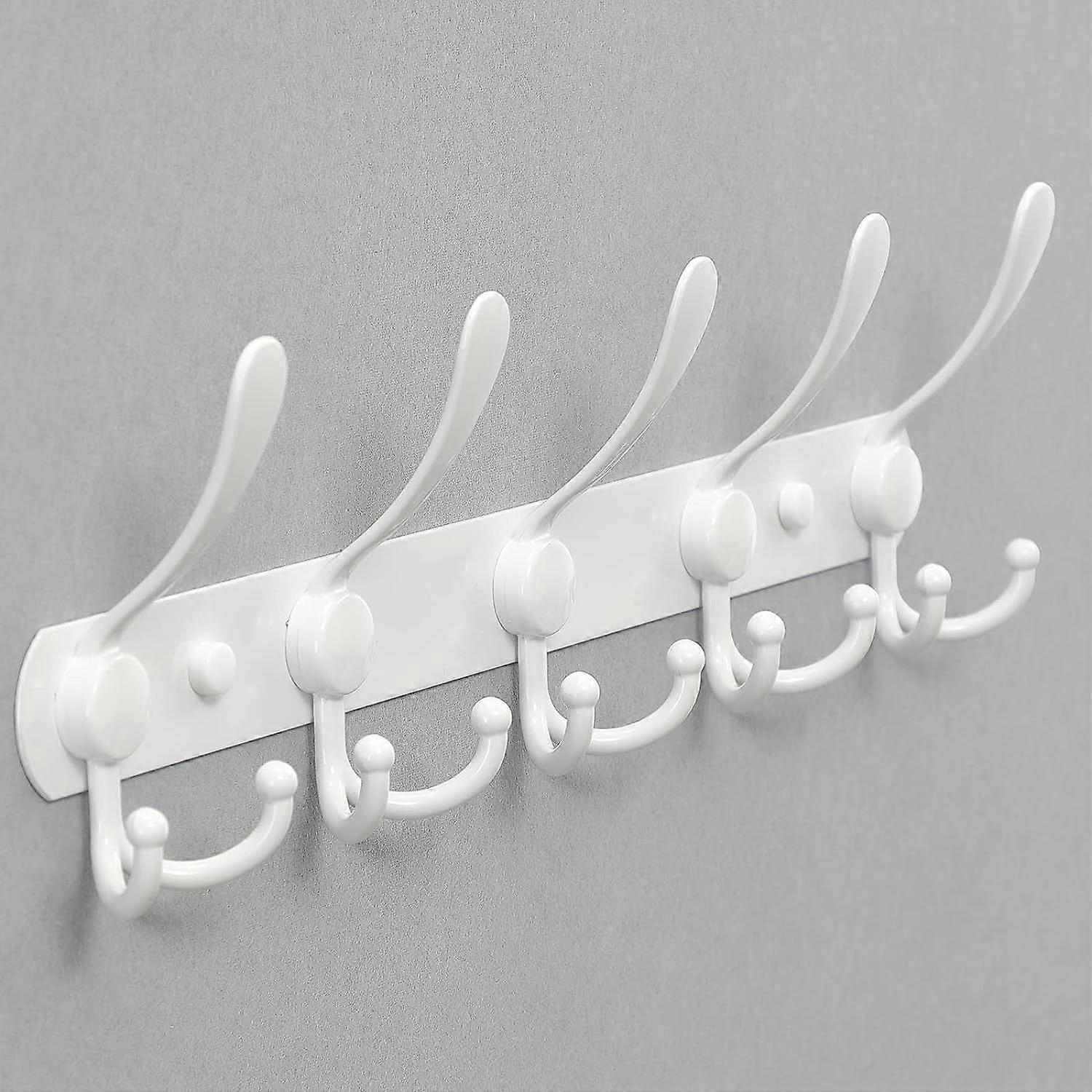 Wall Mounted Coat Rack-Coat Hooks with Bi-Directional Carbon Steel, Solid Bathroom Coat Hooks,White40cm (5 Hook)