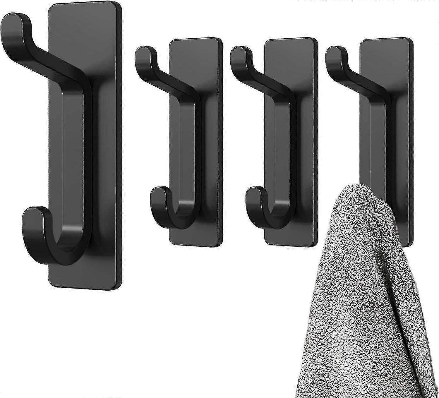 Adhesive Wall Hook, Bathroom Towel Holder, Kitchen Tea Towel Hanger,wall Attachment Without Drilling, Waterproof, Anti-rust, Black, 4 Pieces