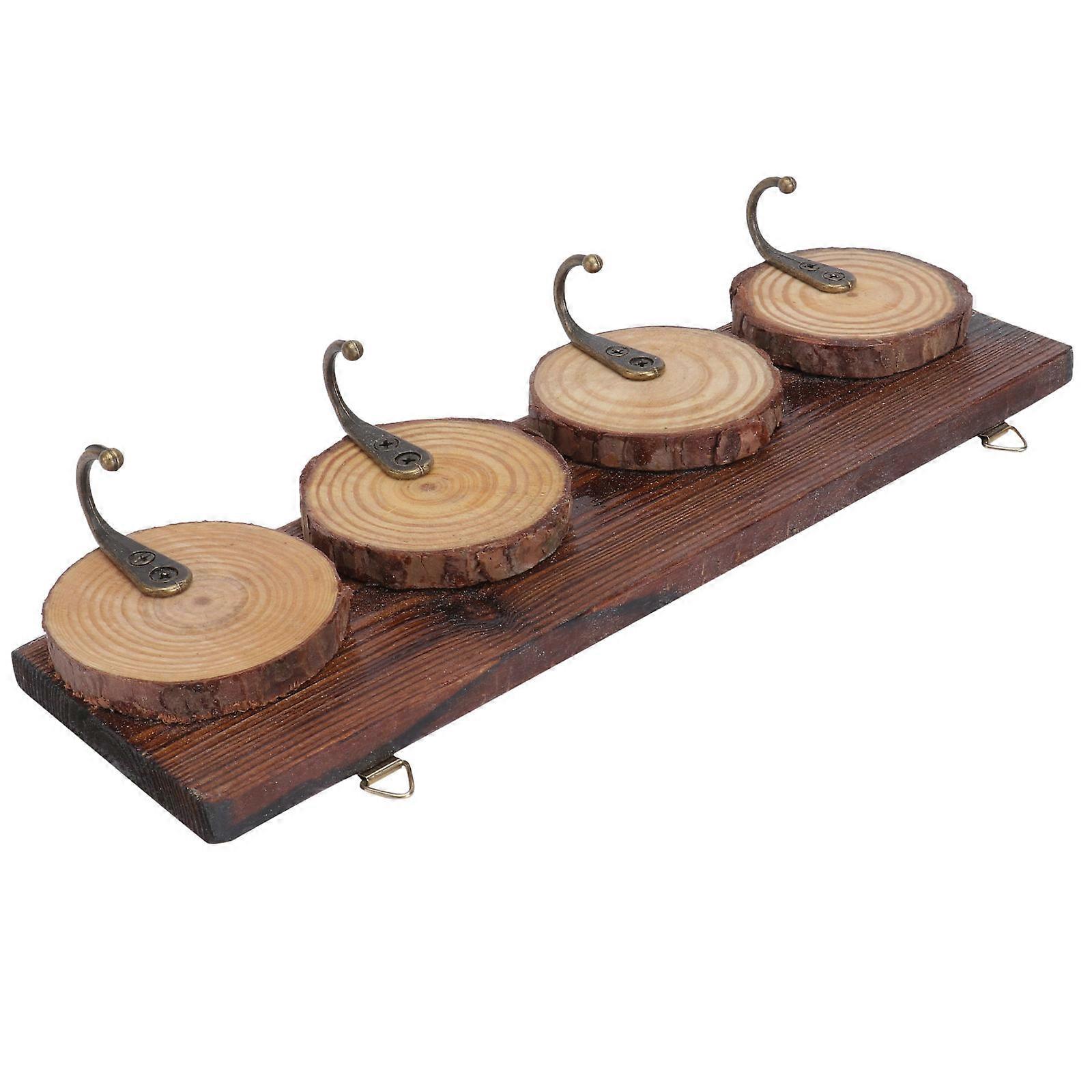 Wooden Hook for Clothes with Copper Material 4 Hooks in a Row Coffee Color Multipurpose Practical Design