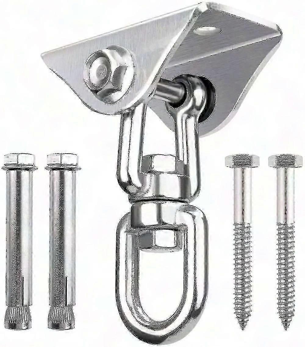 For indoor and outdoor use. Perfect for hanging a chair swing, porch swing, rocking chair, or punching bag, or for hanging another heavy object from an overhead bracket. Corrosion-resistant, high degree of hardness: 304 stainless steel rings made from high-quality raw materials. No rust, corrosion-resistant, high degree of hardness, and non-toxic for the environment. Suitable for any location. Easy to install: We have pre-drilled two holes for screwing onto wooden beams or concrete. Includes 2 concrete anchors and 2 hex screws, and a unique one-piece design, and can be installed in minutes. 360 rotation design: The innovative design makes it more flexible so it can be used in more ways. For example, playgrounds, swings, porch swings, or hammock swings. What you will receive: swivel hanger with 2 concrete anchors and 2 hex screws.