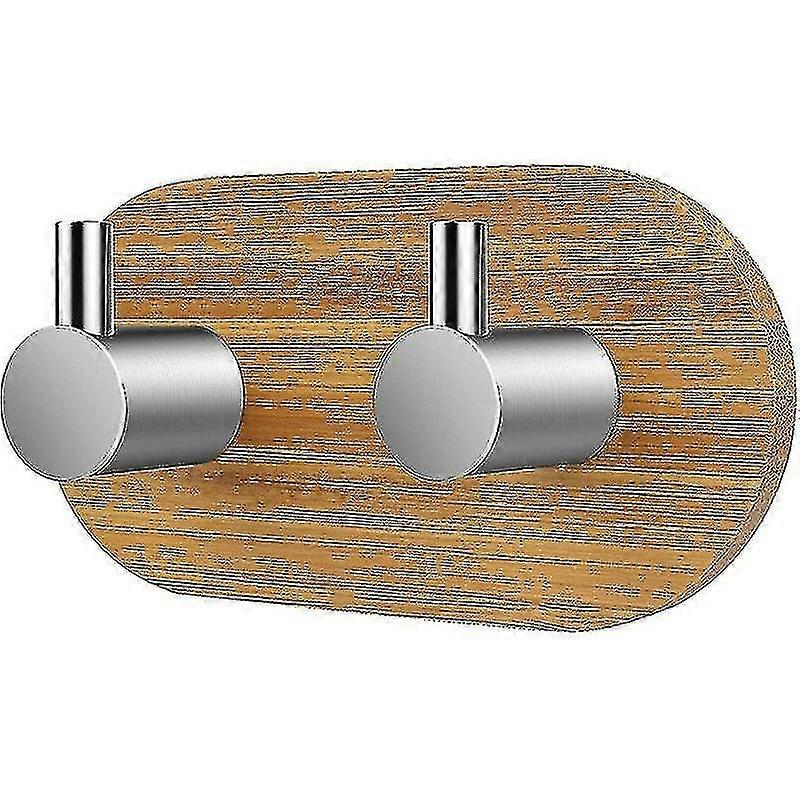 Sticky Hook, Bathroom Wall Mounted Towel Rack Hook, Kitchen Bedroom Hook, Bamboo Wood And Stainless Steel