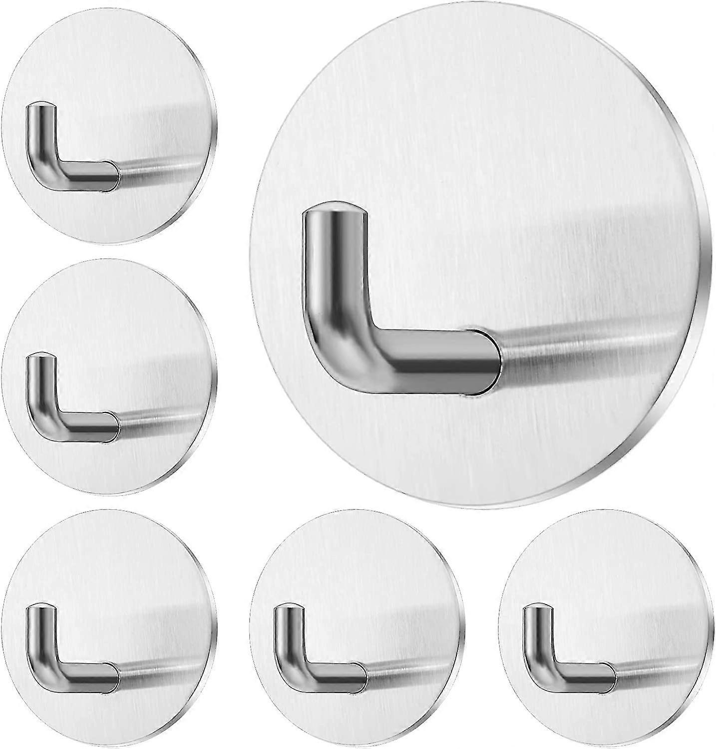 (silver)adhesive Hook, Stainless Steel Bathroom Wall Hook, 6 Pieces Self-adhesive Towel Hooks Without Drilling For Kitchen, Living Room And Offic