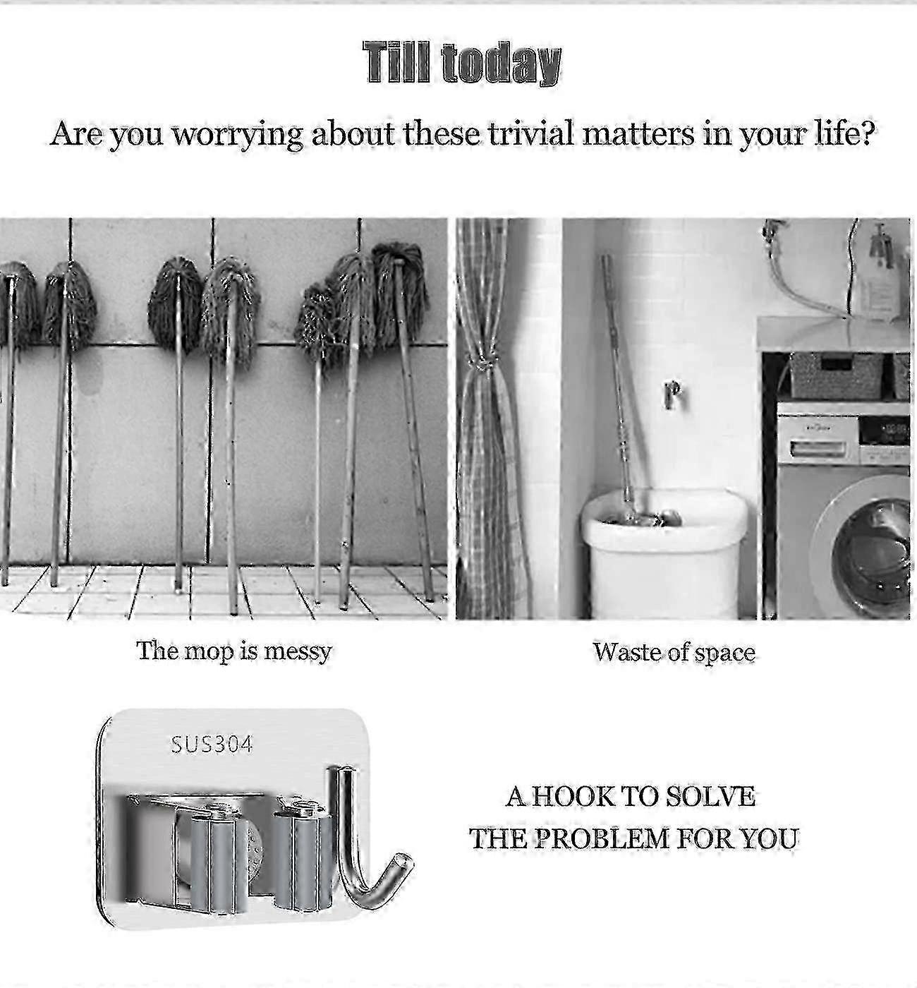 Wall-mounted Broom Hook, 304 Stainless Steel Hook, Family Storage Hook, One Hook Is Multi-purpose, Hole-free Mop Hook