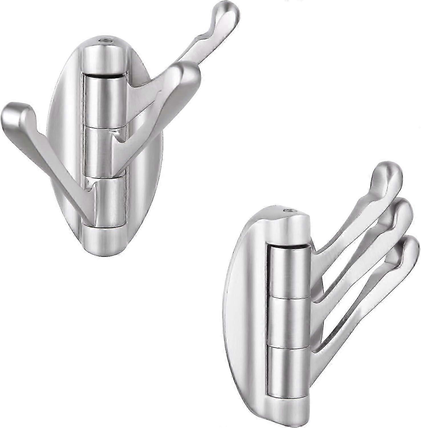 Foldable Swivel Towel Hook 2 PCS, Metal Flexible Coat Hook, Bath Towel Holder, Heavy Duty Robe Clothes Hanger for Bathroom RV Wall Mount, Brushed Nick