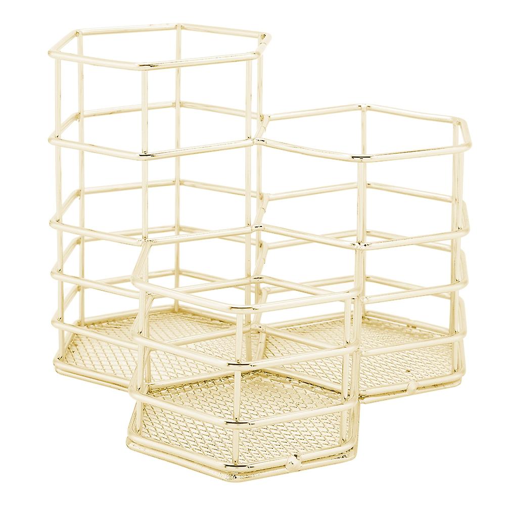 Wire Stripes Pencil Holder Round Iron Mesh Pen Pencil Cup Stationery Organizer (gold)