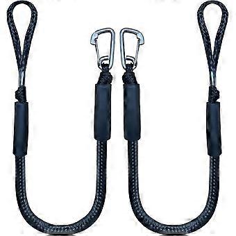 خط رصيف Bungee مع خطاف ، حبل إرساء أسود للقارب 4 قدم 2 حزمة وأسود