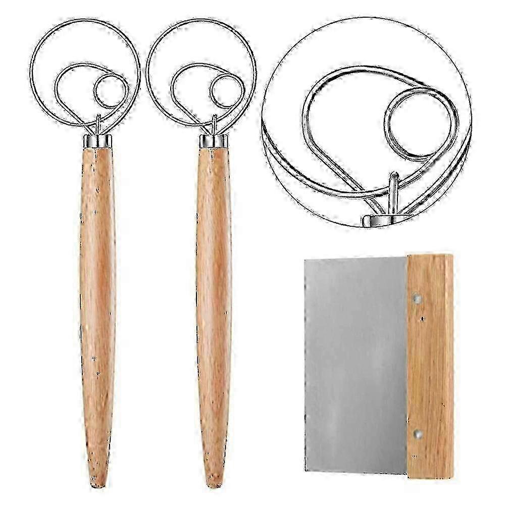 2Pcs Danish Dough Whisk with a , Bread Mixer , Wooden Handle Dough Whisk and Bread Cutting