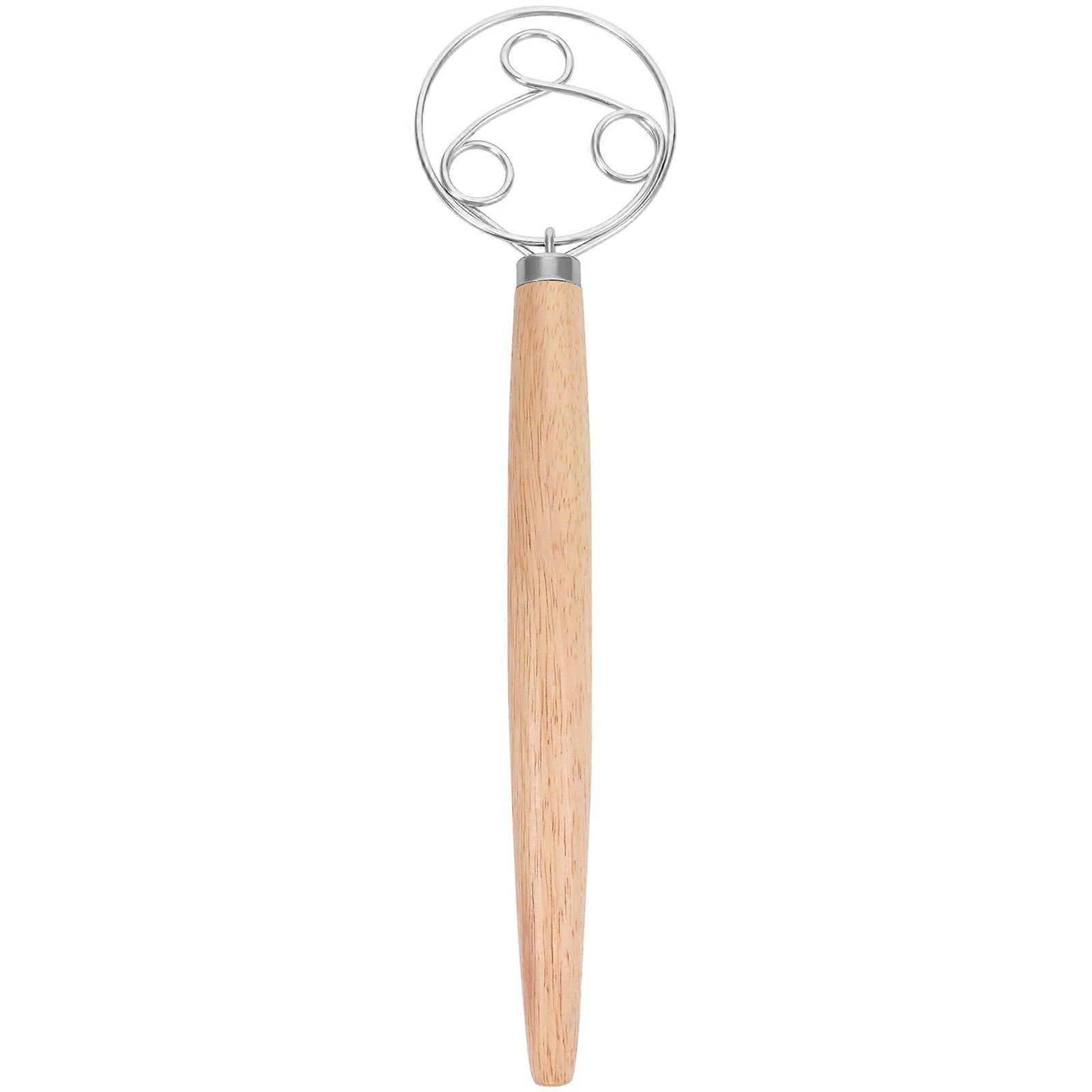 Stainless Steel ThreeRing Flour Whisk with Light Brown Wooden Handle for Home Baking 10.5 Inch