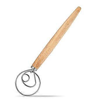 خلاط يدوي كبير من العجين الدنماركي - خفاقة دنماركية كبيرة 13 من الفولاذ المقاوم للصدأ وخشبية - خلاط حرفي على الطريقة الهولندية للخبز والخليط والكعك والمعجنات و