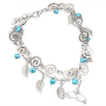 Anklets For Women Beach Double Layer Anklet Ethnic Style Mermaid Design Ankle Chain Silver Adjustable 1Set