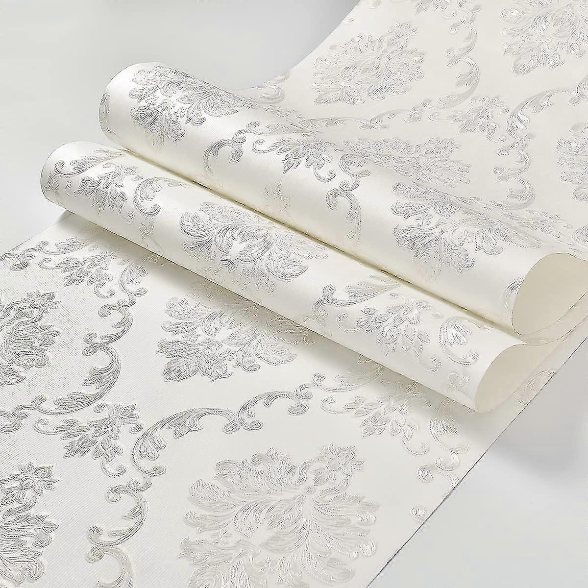 White wallpaper, 3D retro wallpaper stick and peel, non-woven vintage wallpaper for bedroom