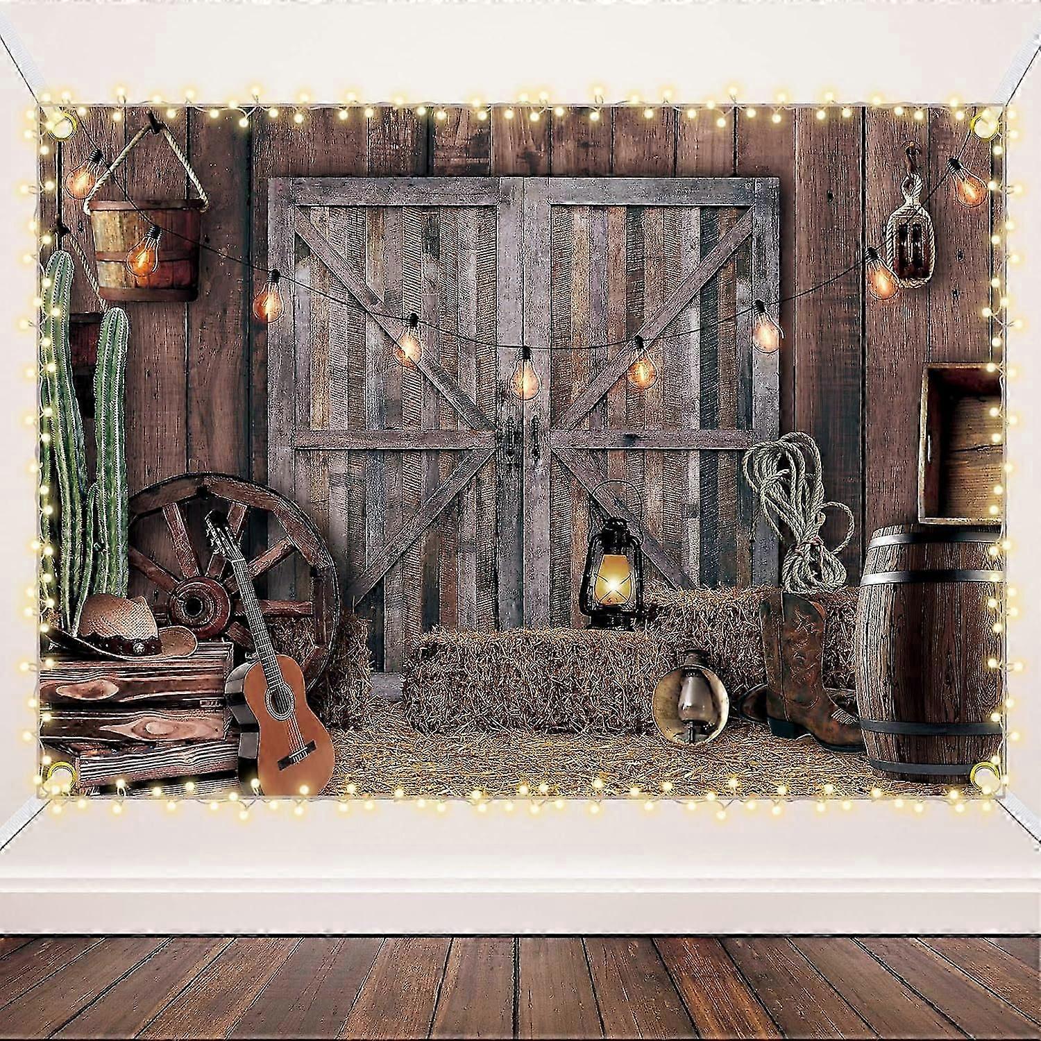 Western Cowboy Backdrop Western Party Supplies Decorations Wild West Decor Rustic Wooden House Barn Photography Background for Kids (7 x 5 Ft)